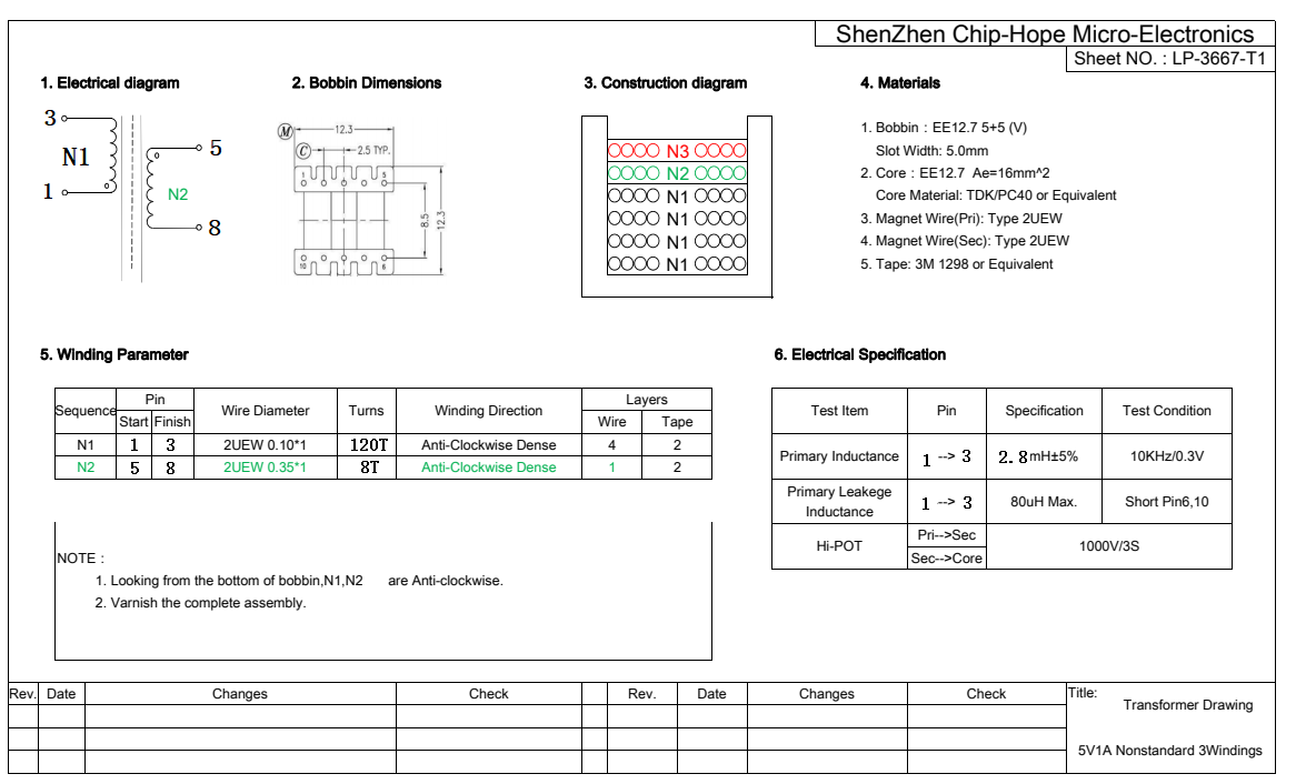 變壓器資料:EE12.7雙繞組,已量產(chǎn)無需調(diào)試